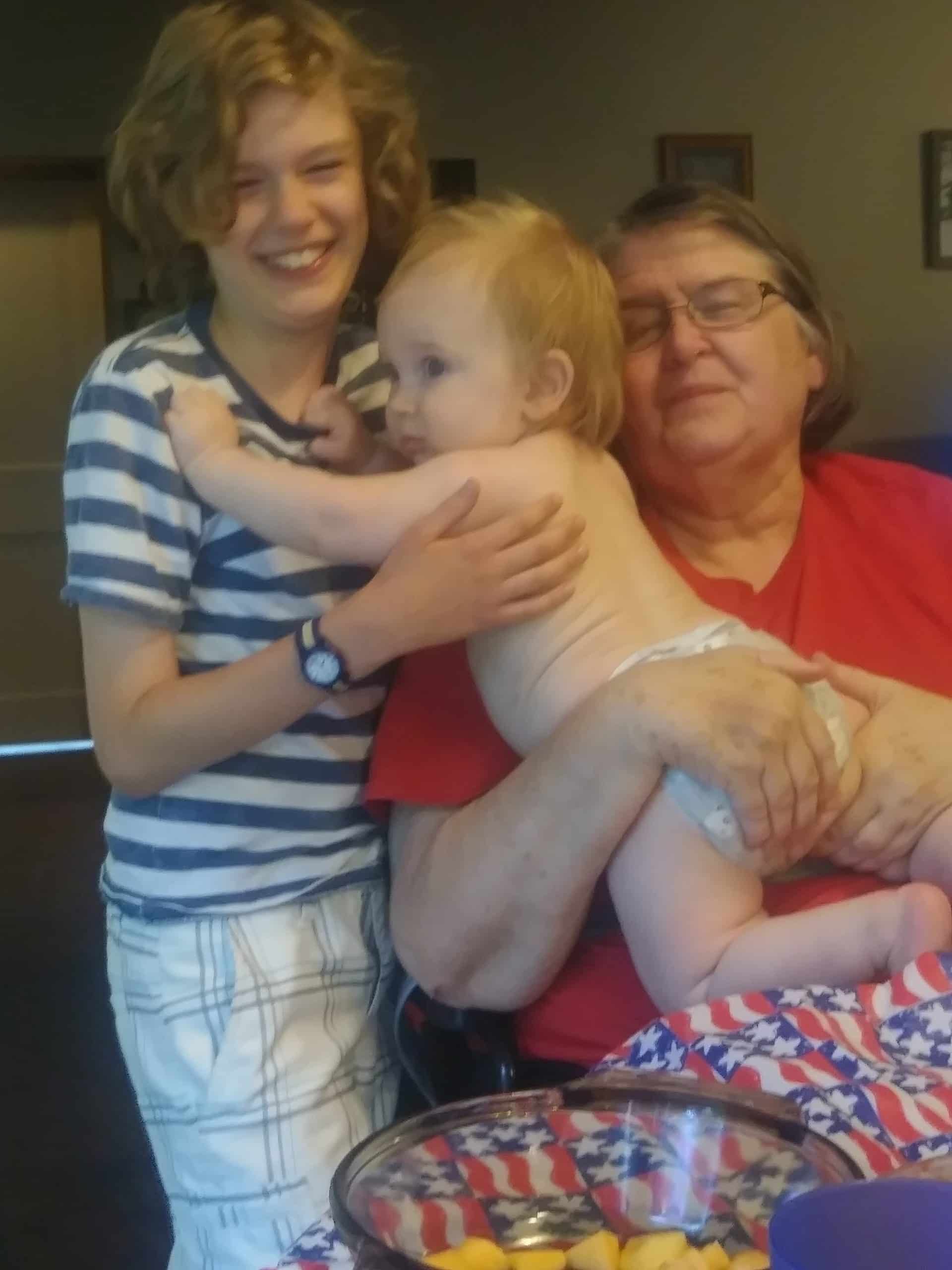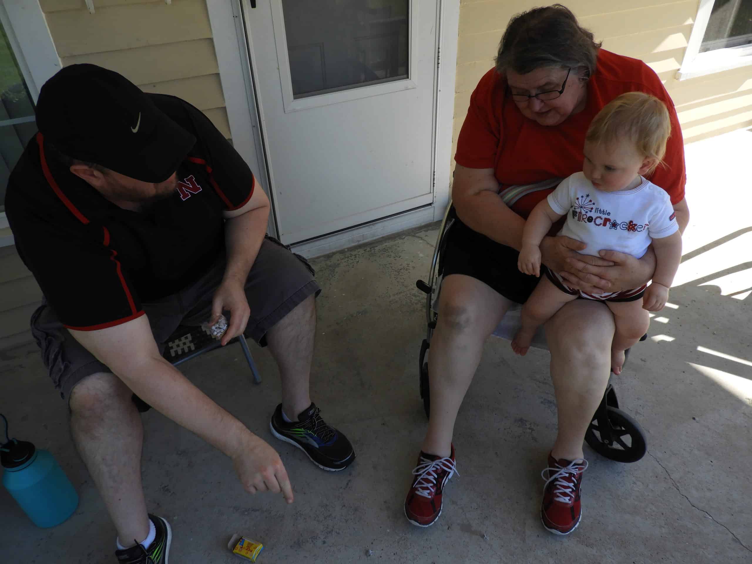 We went down to Beatrice to celebrate Independence Day with my parents and brother and his family. My Mom had begun having some pain and difficulty walking and was getting around with the help of a wheelchair. Even so, we enjoyed time as a family. Carol continues to be a pyromaniac and Grant is following in her footsteps.