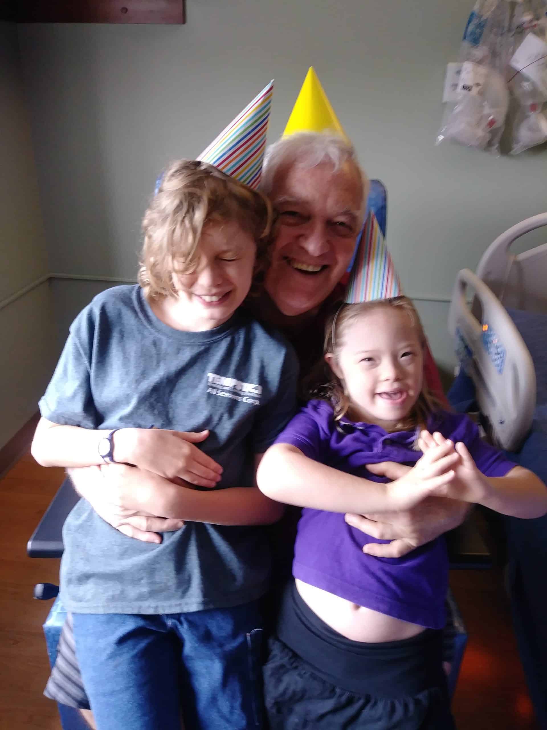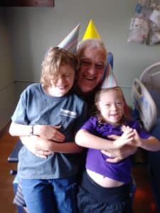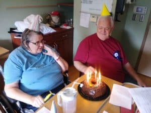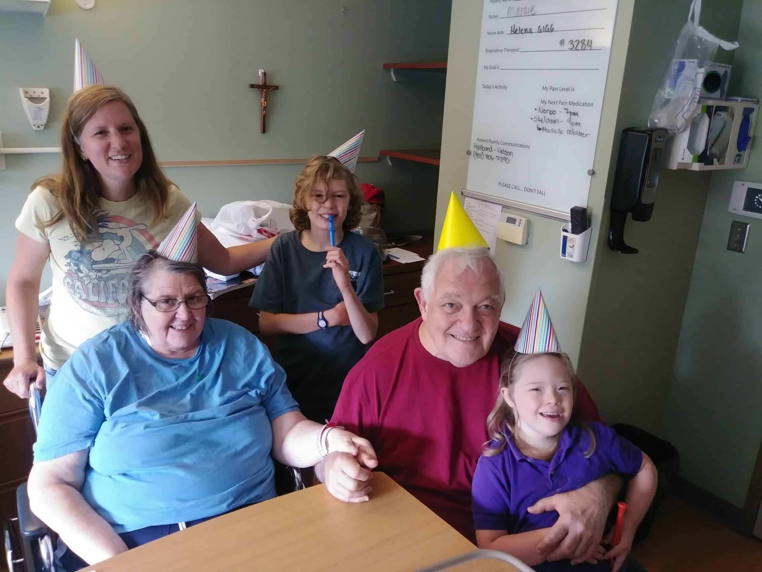 By the time that Dad’s 70th birthday actually came around, my Mom’s condition had worsened to the point that there was no other option than to have surgery. She had to have a section of one of the bones in her neck cut away and several vertebrae in her neck fused together to stop pressure from being put on her spinal cord. She had successful surgery, which stopped further damage from being done, but it required her to move from the hospital where surgery was performed into a rehab hospital to continue her recovery. So we had to celebrate Dad’s birthday at the rehab facility here in Lincoln where Mom stayed for 3 weeks or so. While it wasn’t how we’d liked to have celebrated Dad’s special day, we enjoyed being together and loved seeing the progress that Mom had already started to make.