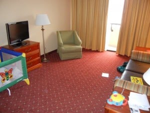 Carol found a sweet hotel deal online which allowed us to stay at an Embassy Suites for pretty much the same price as you’d normally pay at a Motel 8 or something. It was great to have a separate room to set up Grant’s pack-and-play in so he could go to bed and Carol and I could stay up and watch tv in our room. Here are some pictures of our suite.
