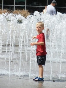 After we were done with the museum we had another picnic lunch and then we let Grant play on the playground and run through the fountains outside of the Children’s museum since we had clean dry clothes in the car. He seemed to enjoy that part of the trip a lot. Here are some pictures from the playground and fountain: