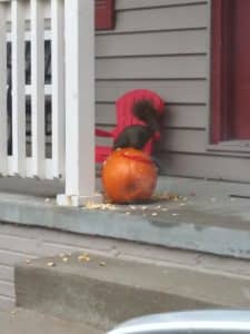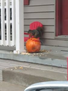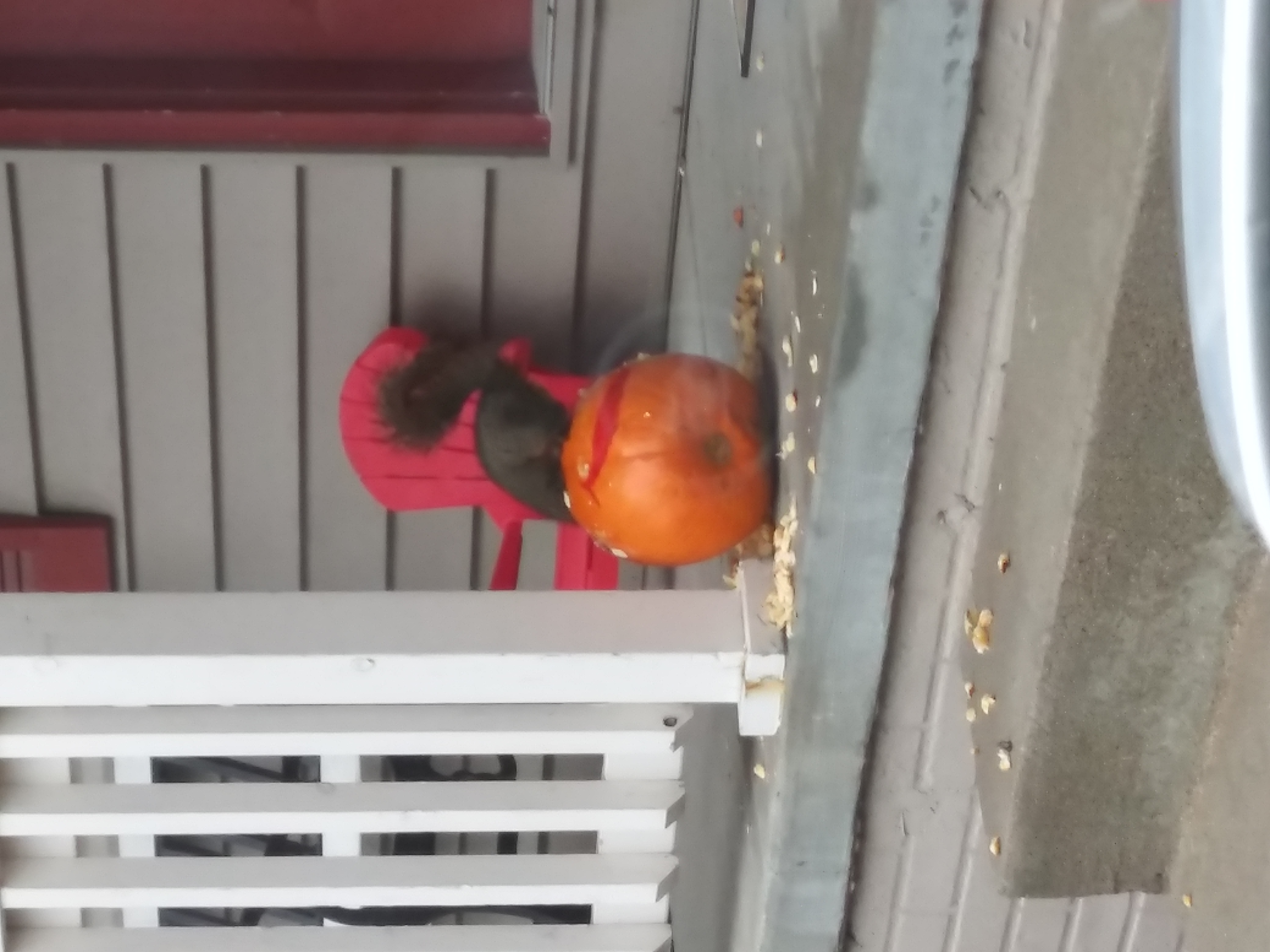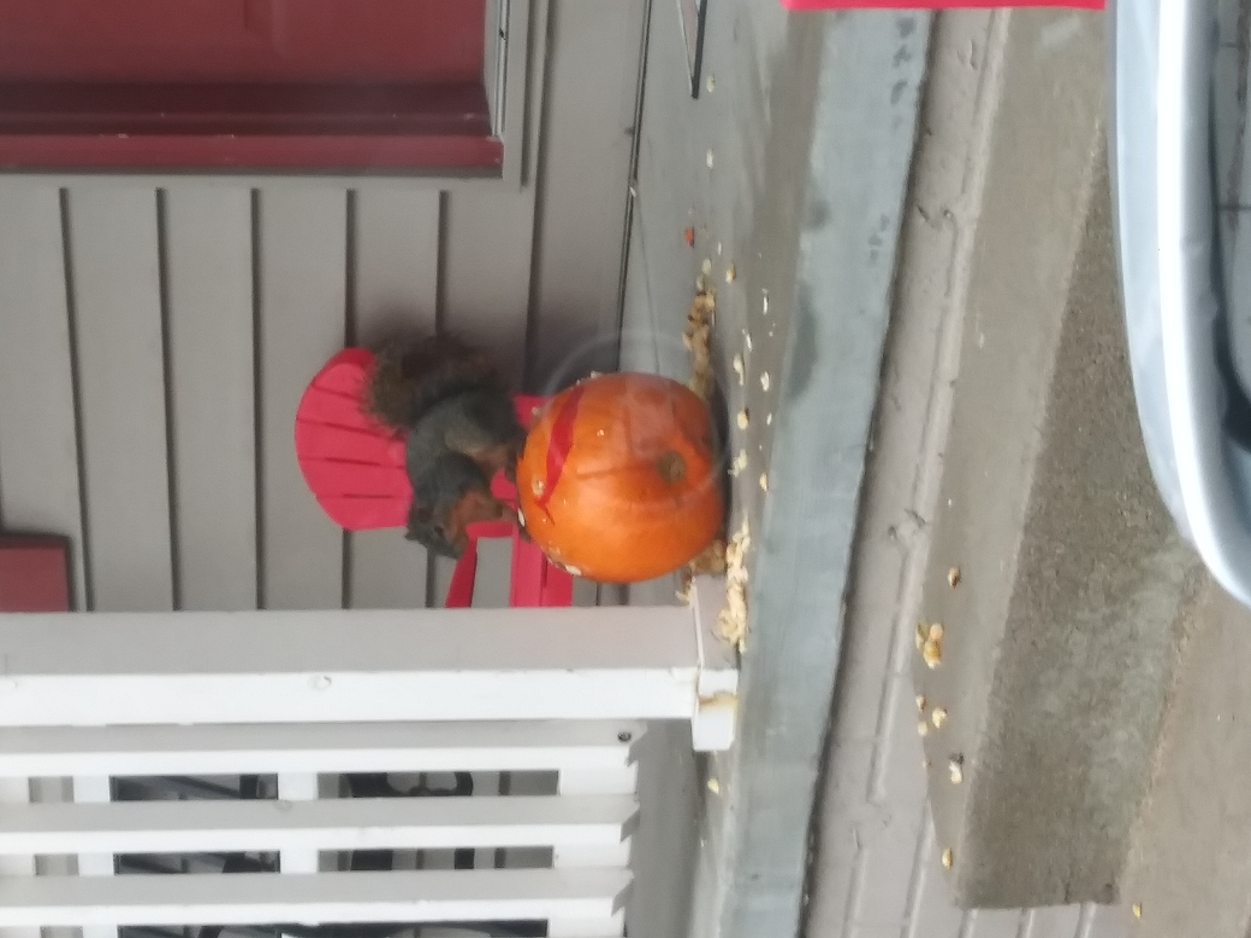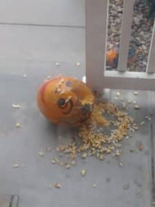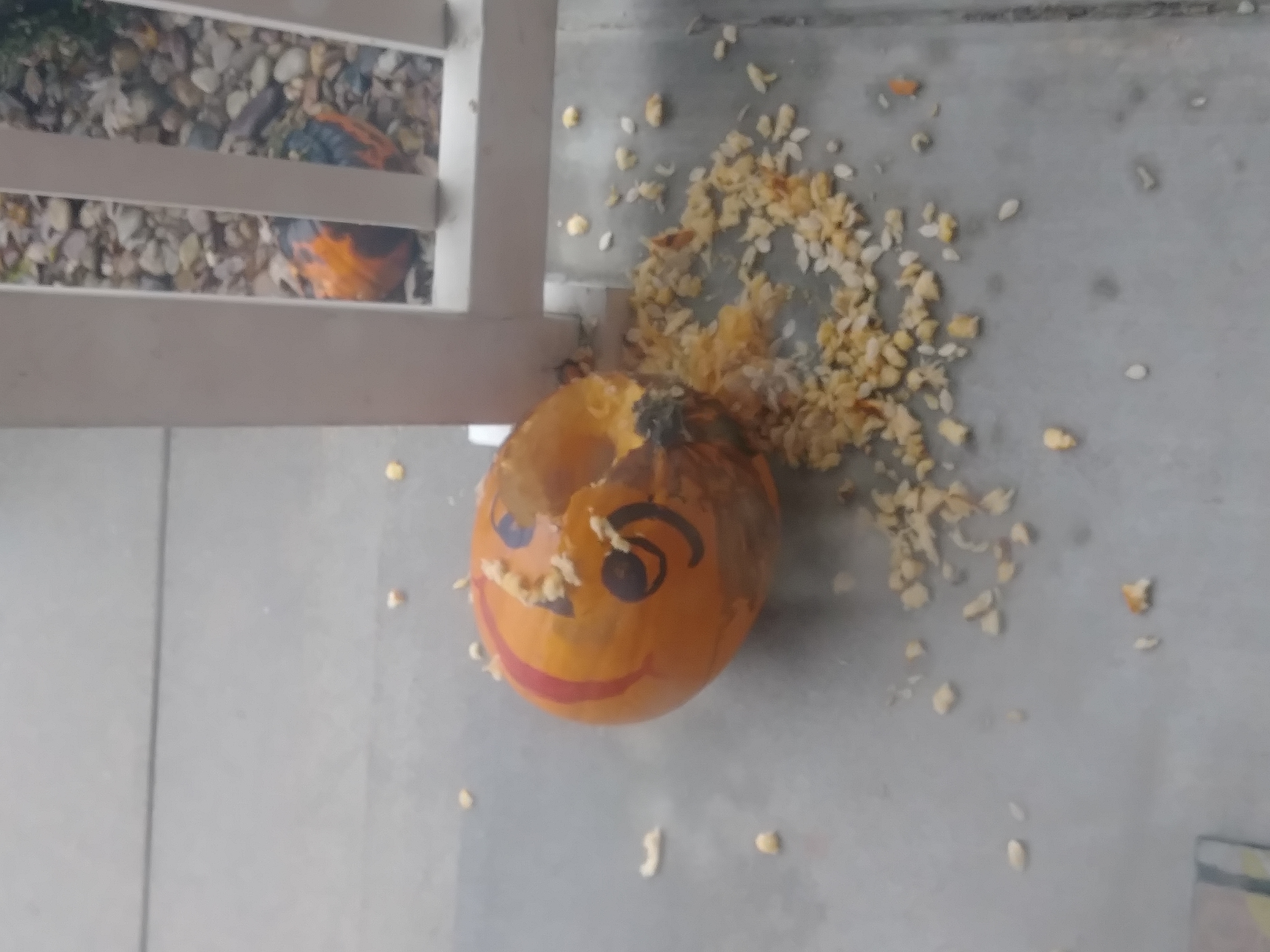 One of our pumpkins from Halloween that Nana had painted was still out on the front porch in November since it had not rotted like the carved pumpkins. One day I looked out to see that the pumpkin had either experienced some sort of terrible accident or been the victim of foul play.