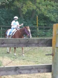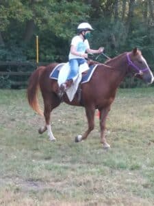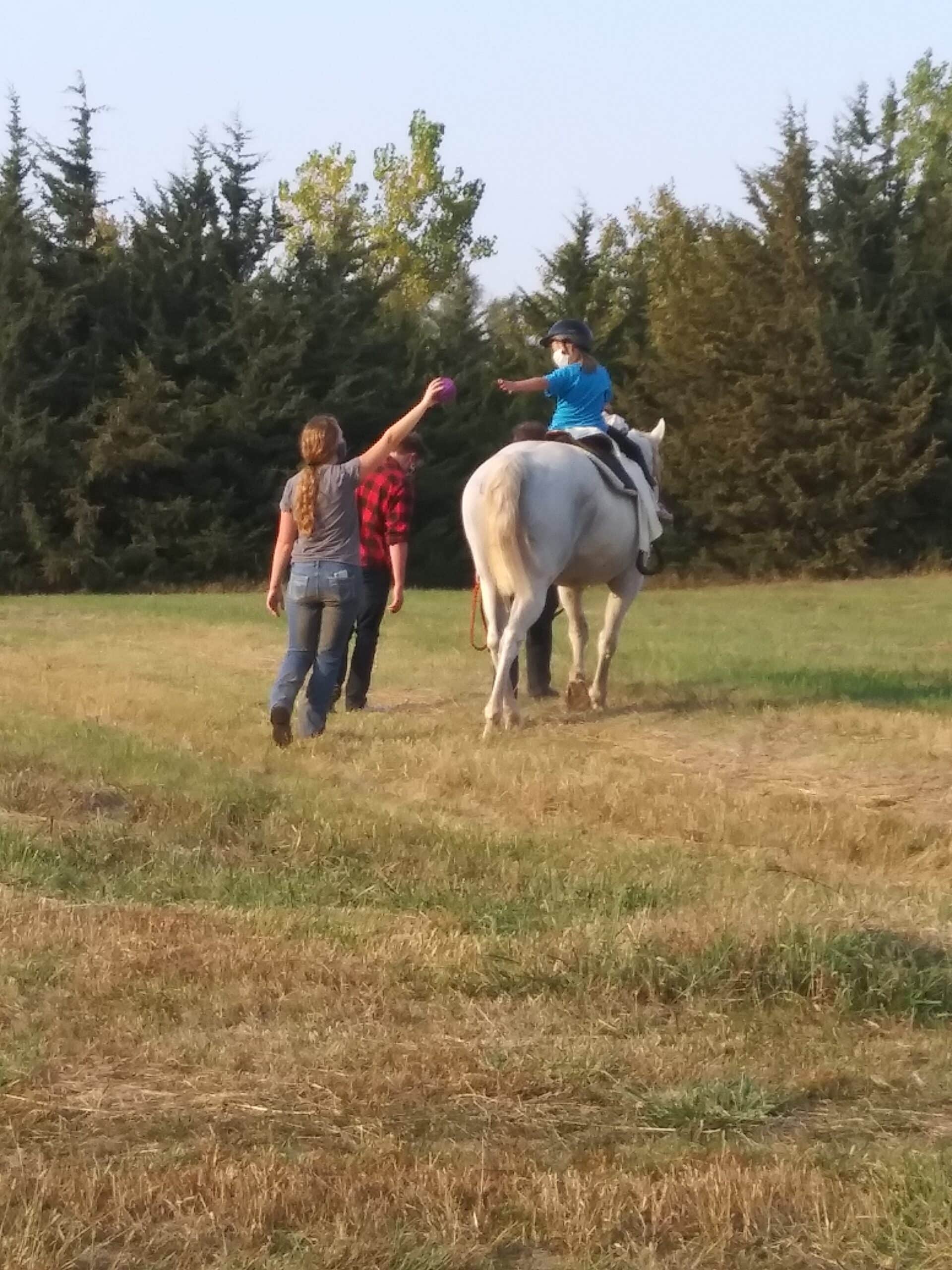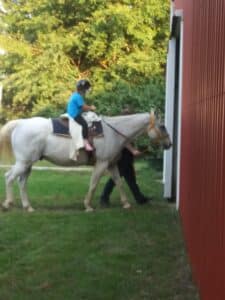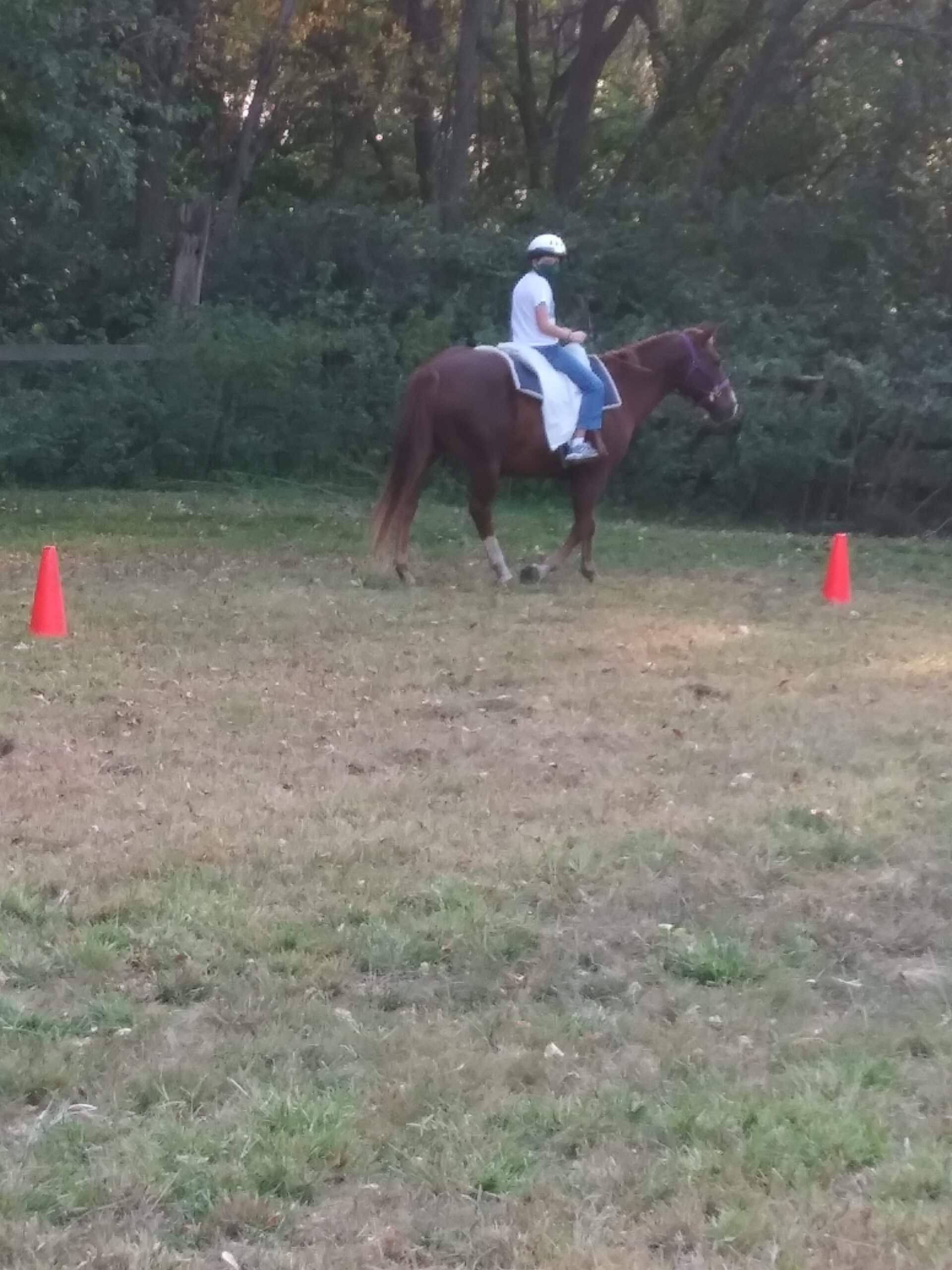 The kids have been taking horse riding lessons through an organization called Windsong Equitherapy. They found a way to re-open safely, so the kids started lessons back up again.