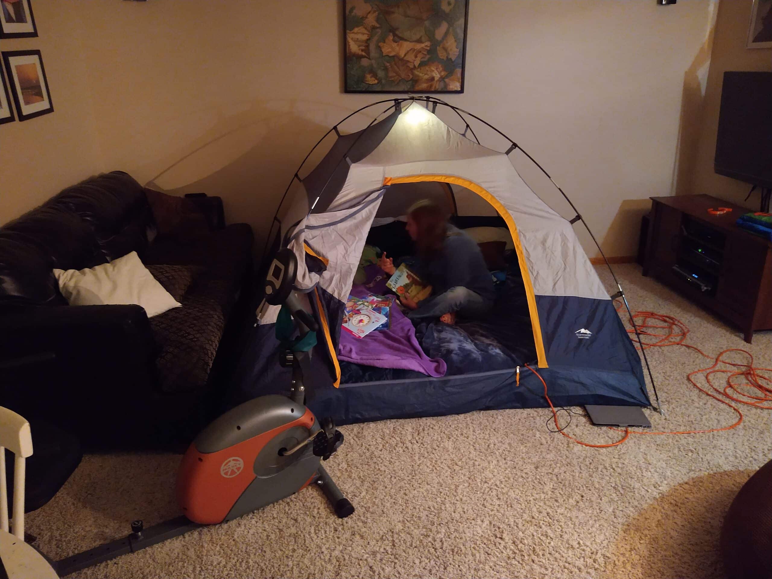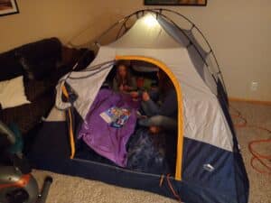 Jenna wanted to camp for her birthday this year, but it was WAY too cold to do it outside. So we set up the tent in the basement and camped for the night down there. We set up a couple of air mattresses inside the tent just like we did with Grant. She seemed to really enjoy it.