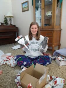 Christmas 2020 was different since we couldn’t go to a church service or be in a family member’s home, but we still enjoyed the holiday. We figured out a way to have Christmas with my parents by setting up some tables in their garage and sitting at opposite ends while wearing masks. We even took a small, decorated tree and put it in the middle of the table.