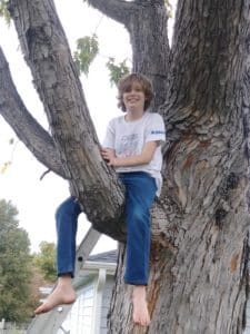 Grant has long enjoy climbing trees. We decided to get out the ladder so that he could climb sit in a tree that he normally wouldn’t be able to reach. He seemed to enjoy himself.