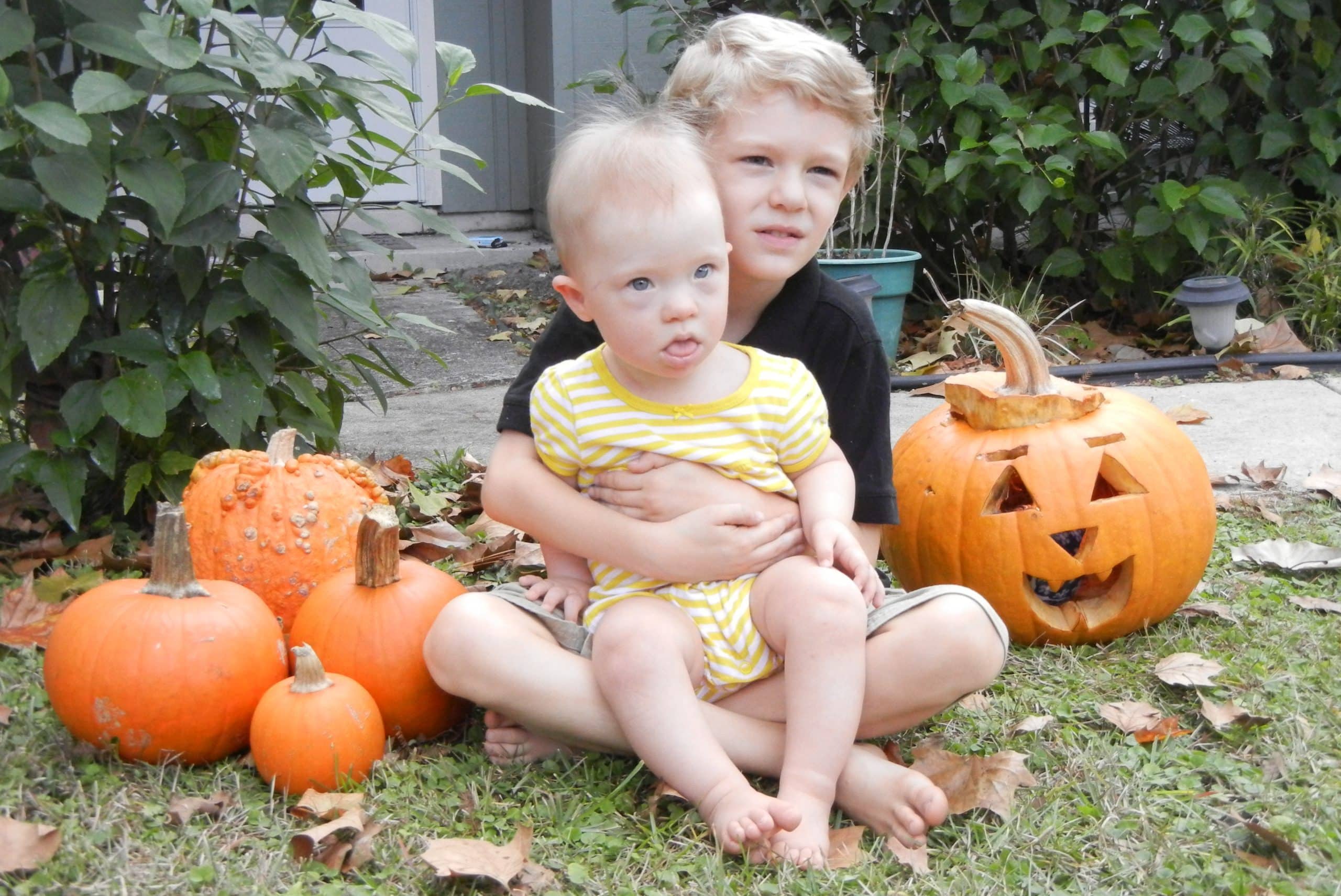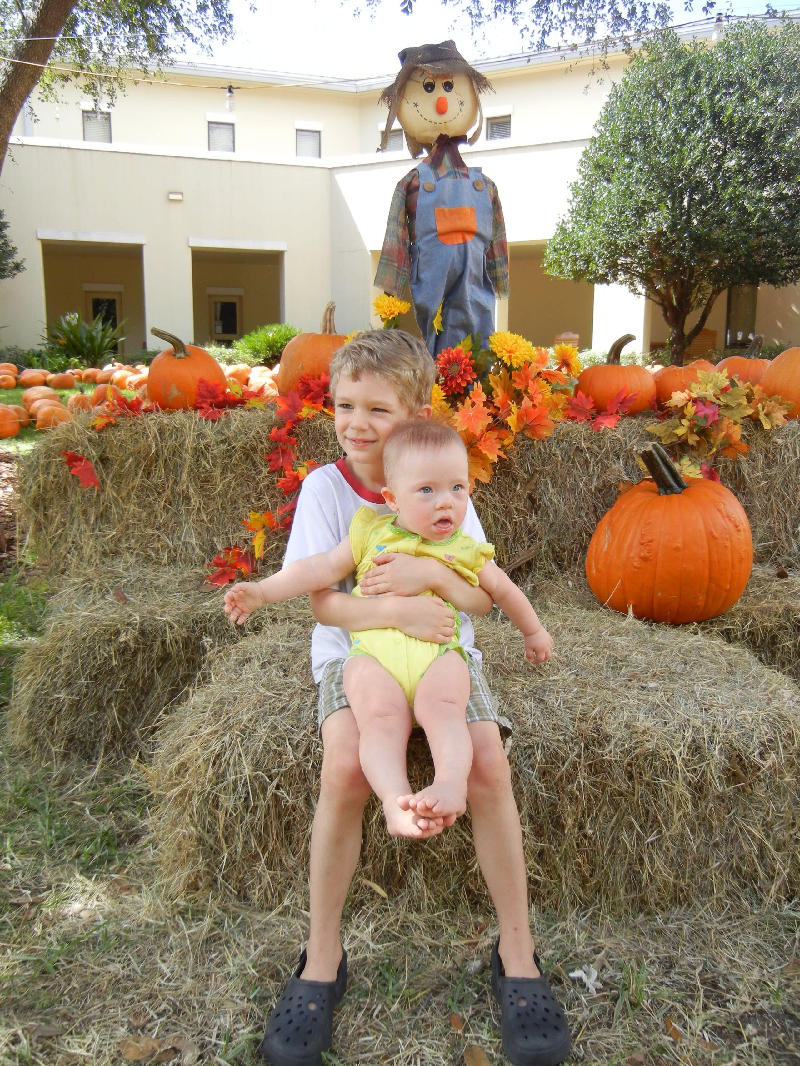 We were able to get a couple of cute pictures of the kids in front of our pumpkins at the house.