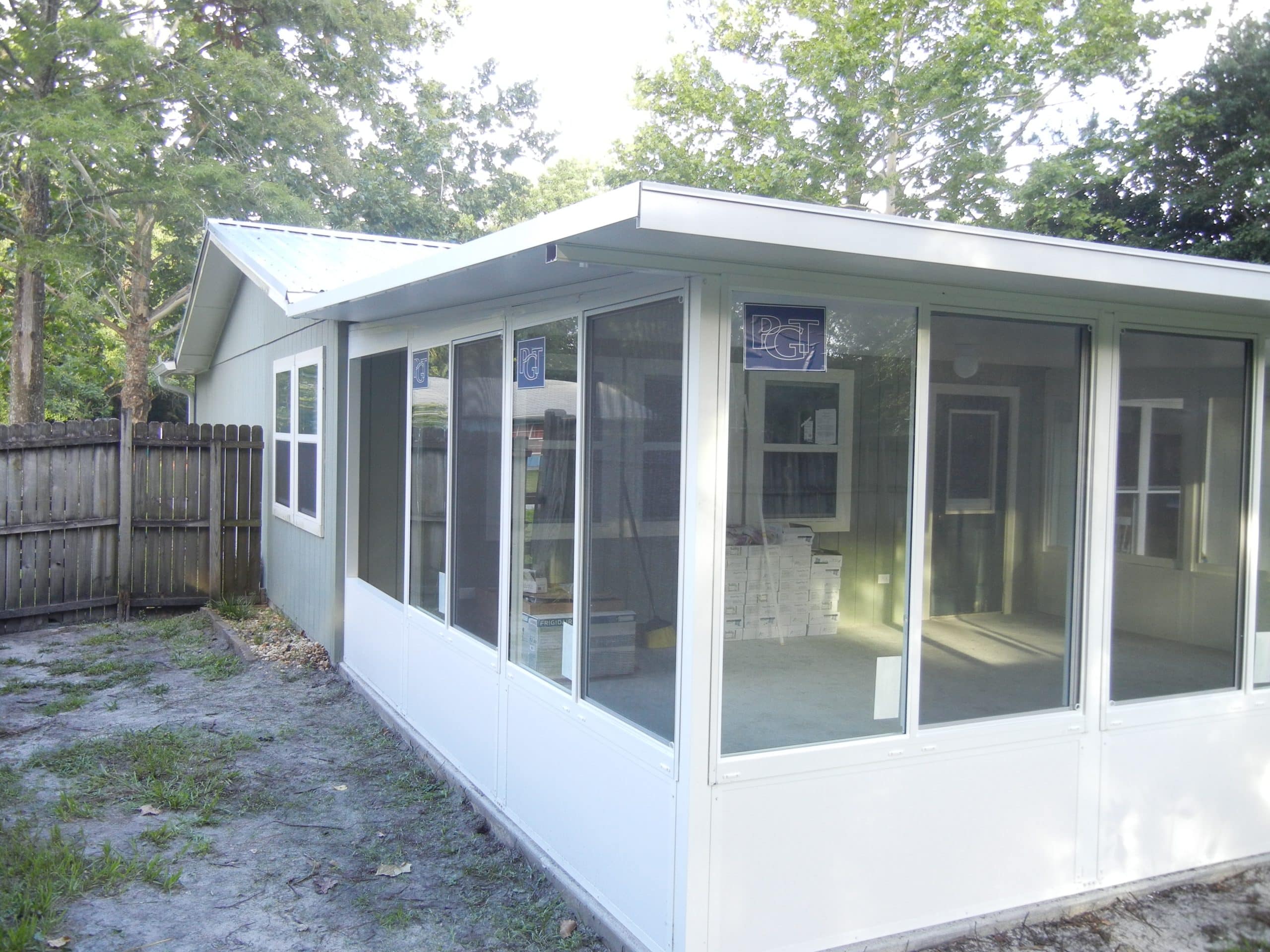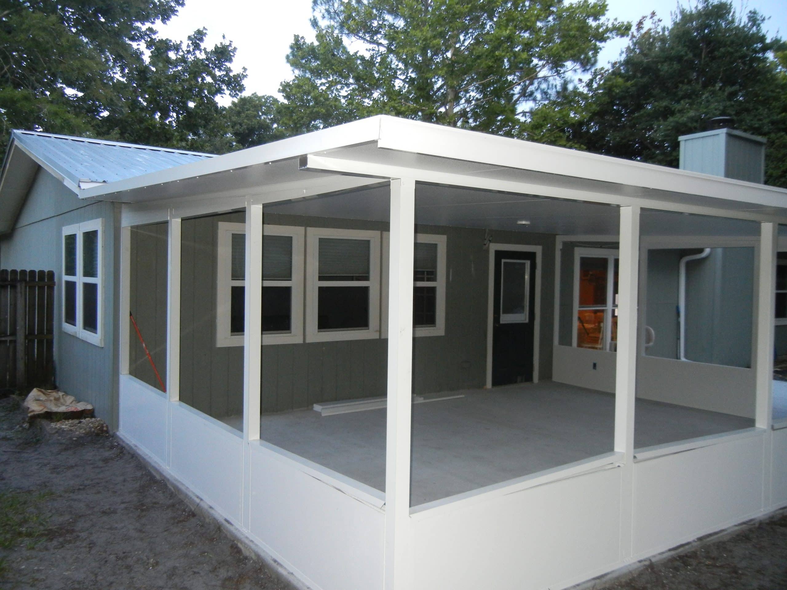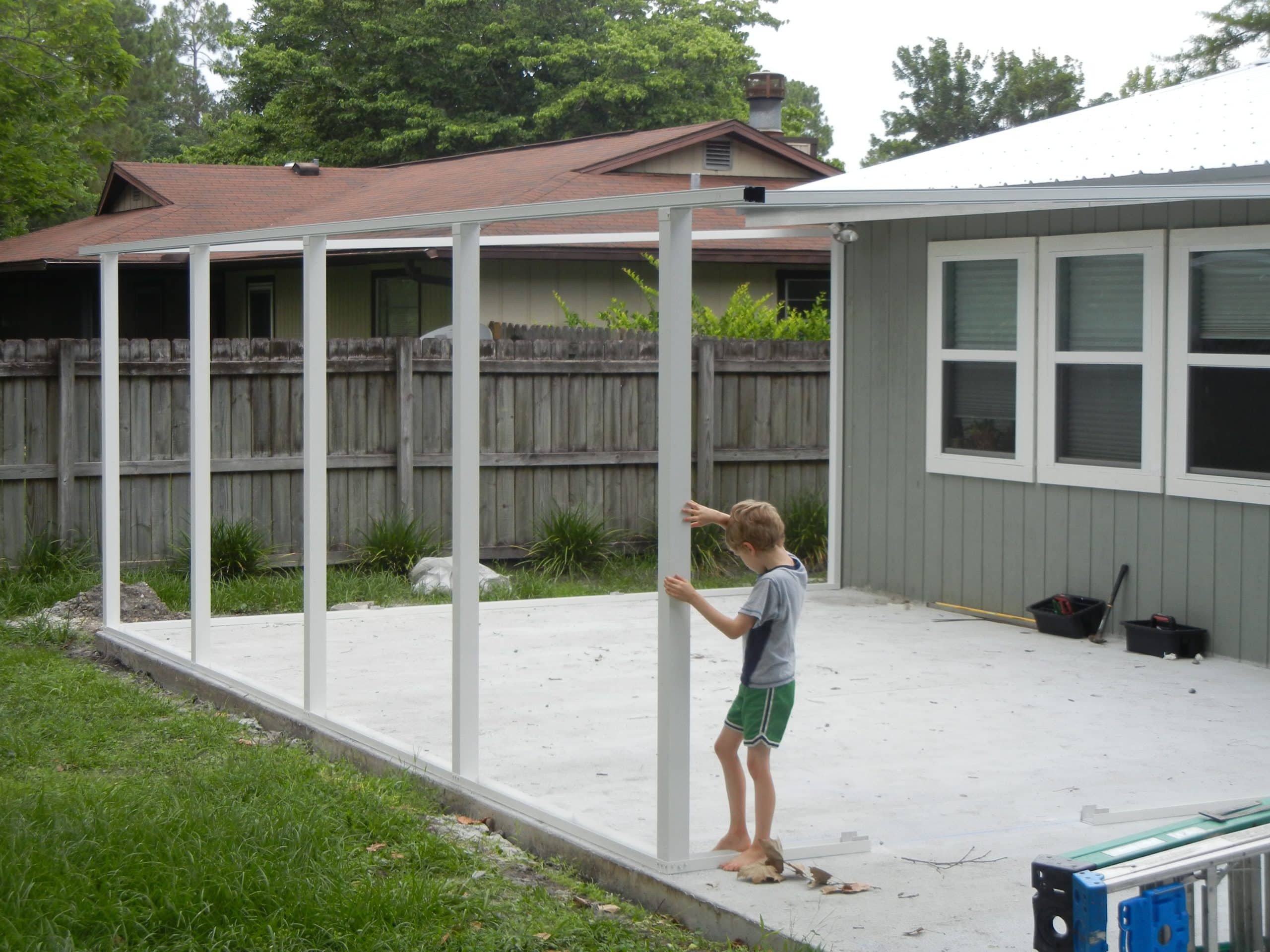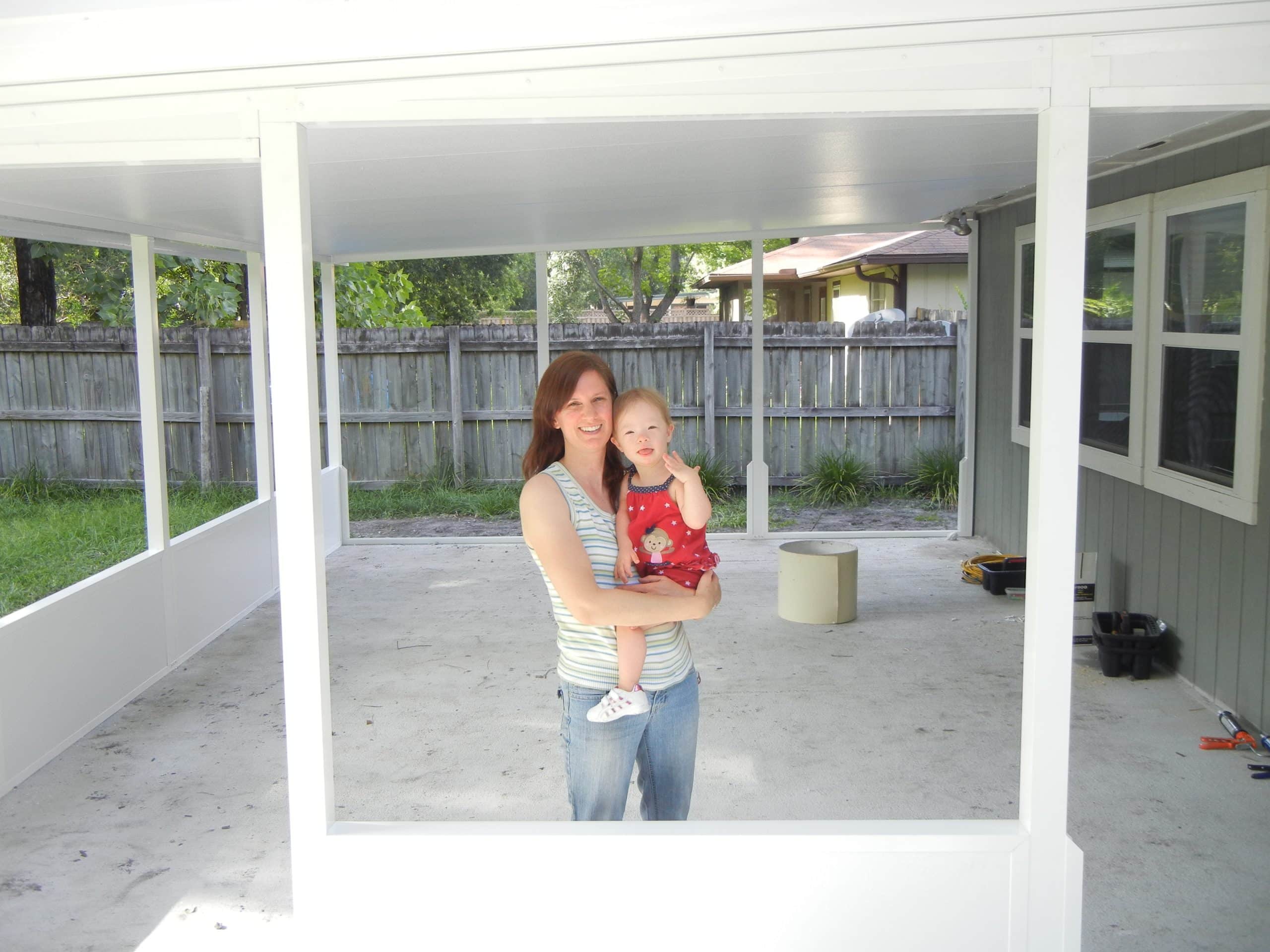 Back in April, we decided to add a four season sun room to the back of our house. We signed a contract with a local aluminum construction contractor and waited (and waited, and waited) for them to finish the job. Finally, we have a finished porch that we can start enjoying! Here are some pictures of the process.