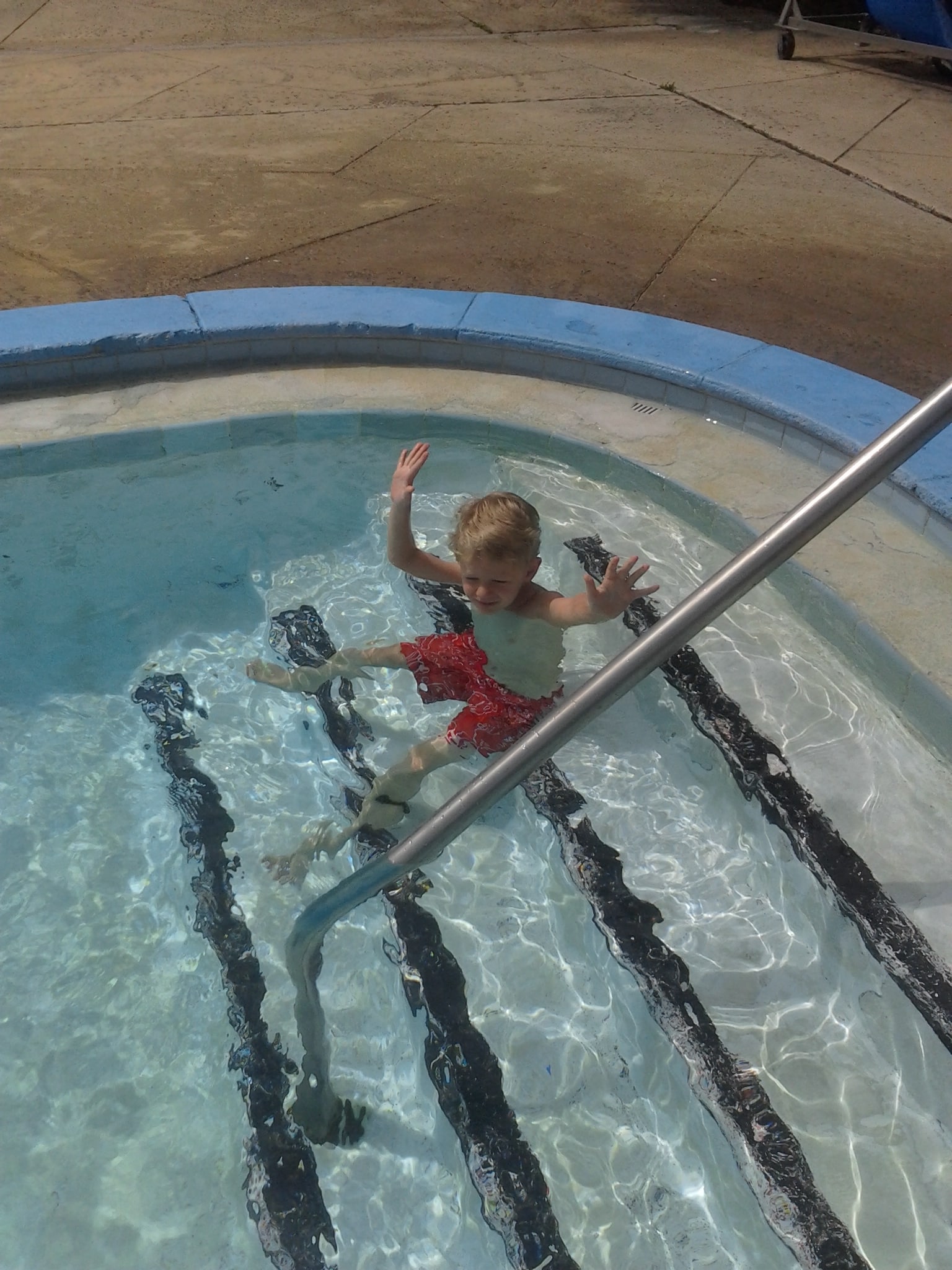Grant took swimming lessons again this summer. He is much more comfortable in the water now and did a great job doing all the things that his teacher told him to do.